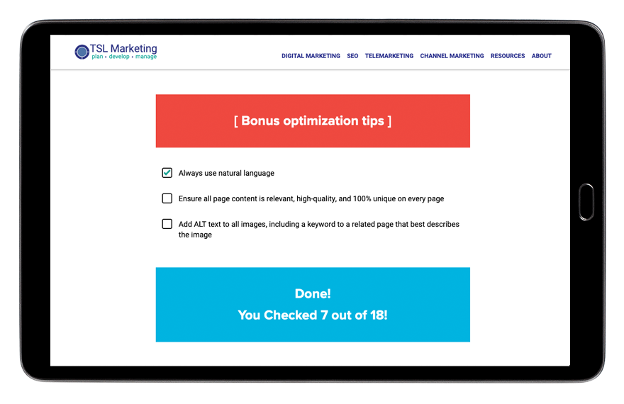 Our interactive SEO Checklist shows you how to improve your rankings quickly and easily.